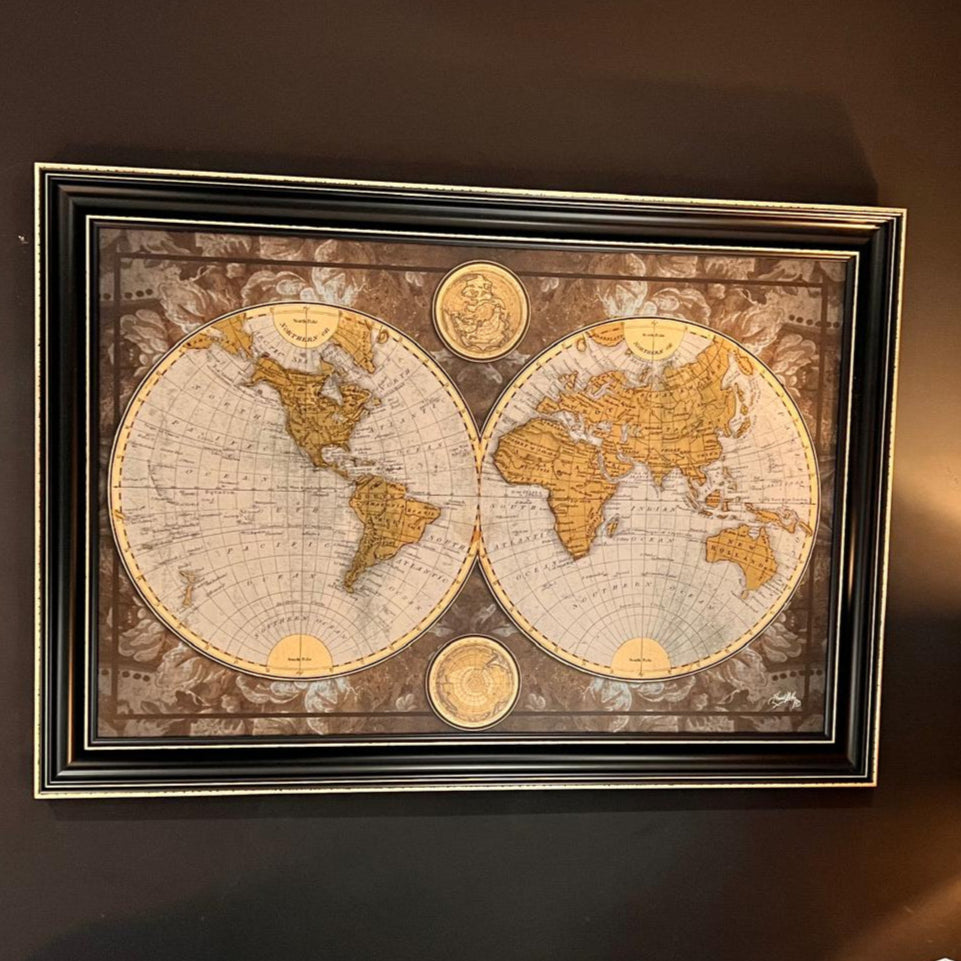 Heat sealed print. Elevate your space with a timeless focal point, our World Map Wall Art is a stunning statement piece that brings sophistication and wanderlust into any room. At a generous 135 cm wide × 96 cm high, this map commands attention without overwhelming the space.